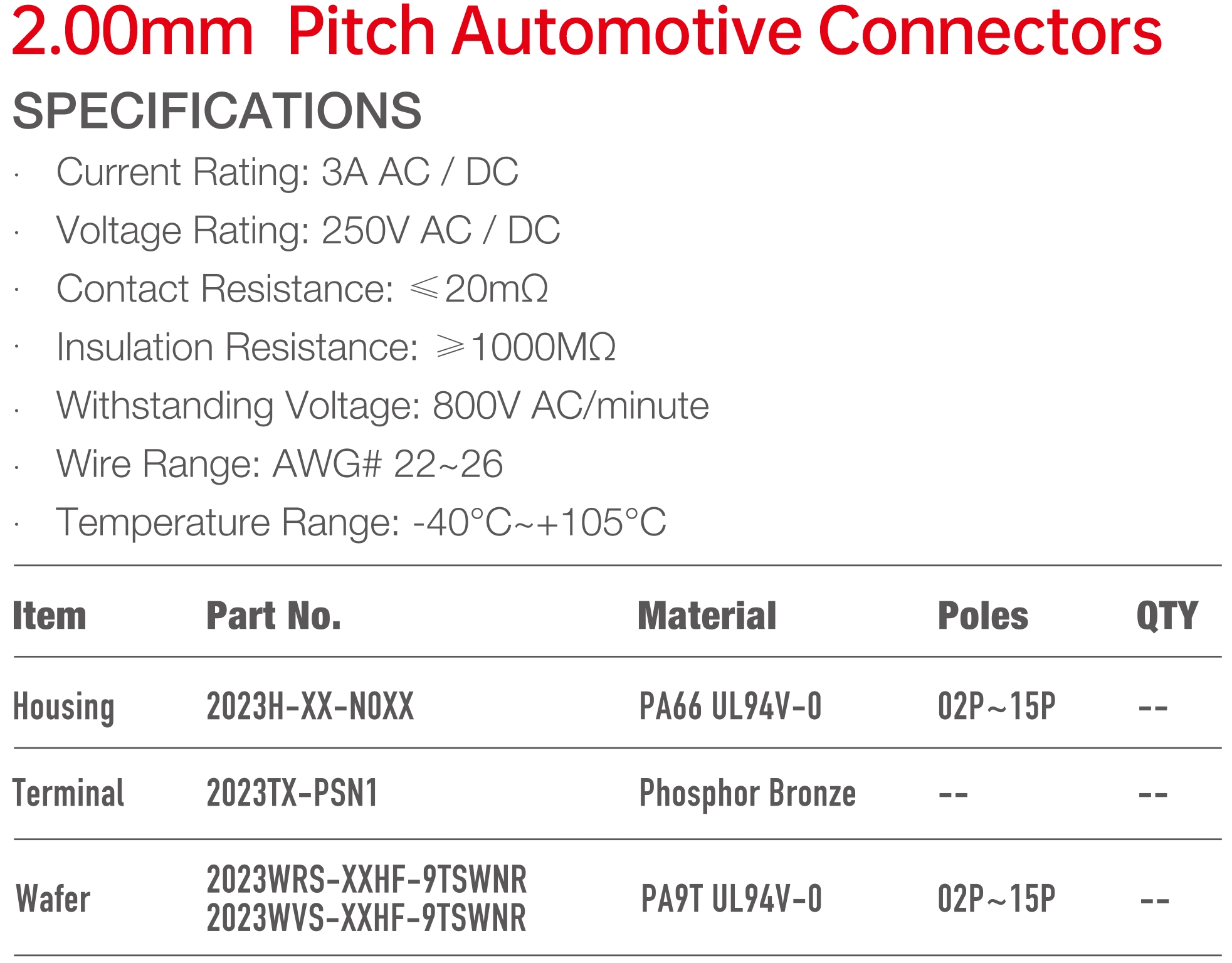 2023 Series 2.00mm Pitch (.079") 車(chē)用連接器