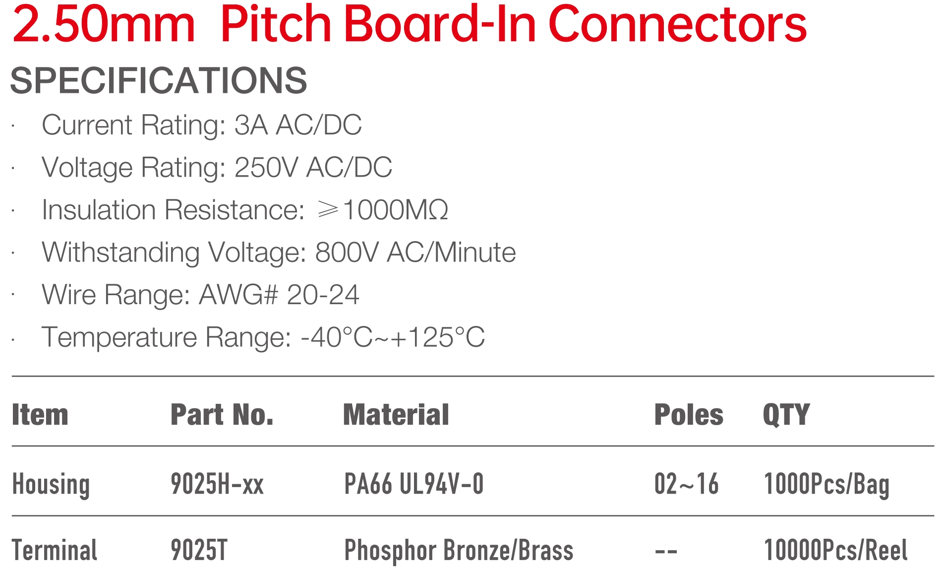 9025 Series 2.50mm Pitch (.098") 基板連接器