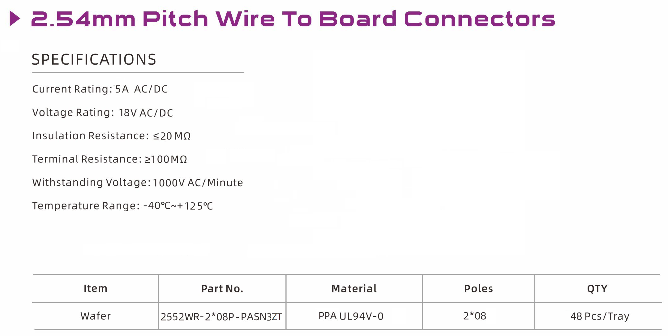 2552 Series 2.54mm Pitch (.100") 線對板連接器