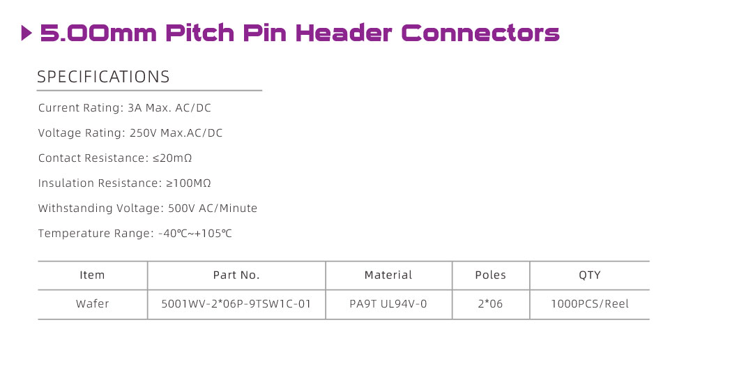5001 Series 5.00mm Pitch (.197") 排針連接器
