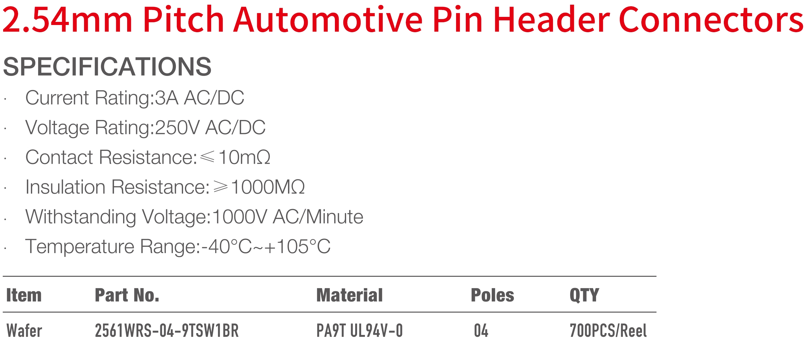 2561 Series 2.54mm Pitch (.100") 車用排針連接器