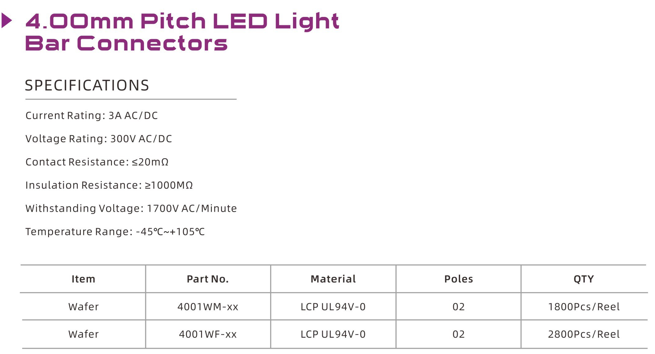 4001 Series 4.00mm Pitch (.157") LED燈條連接器