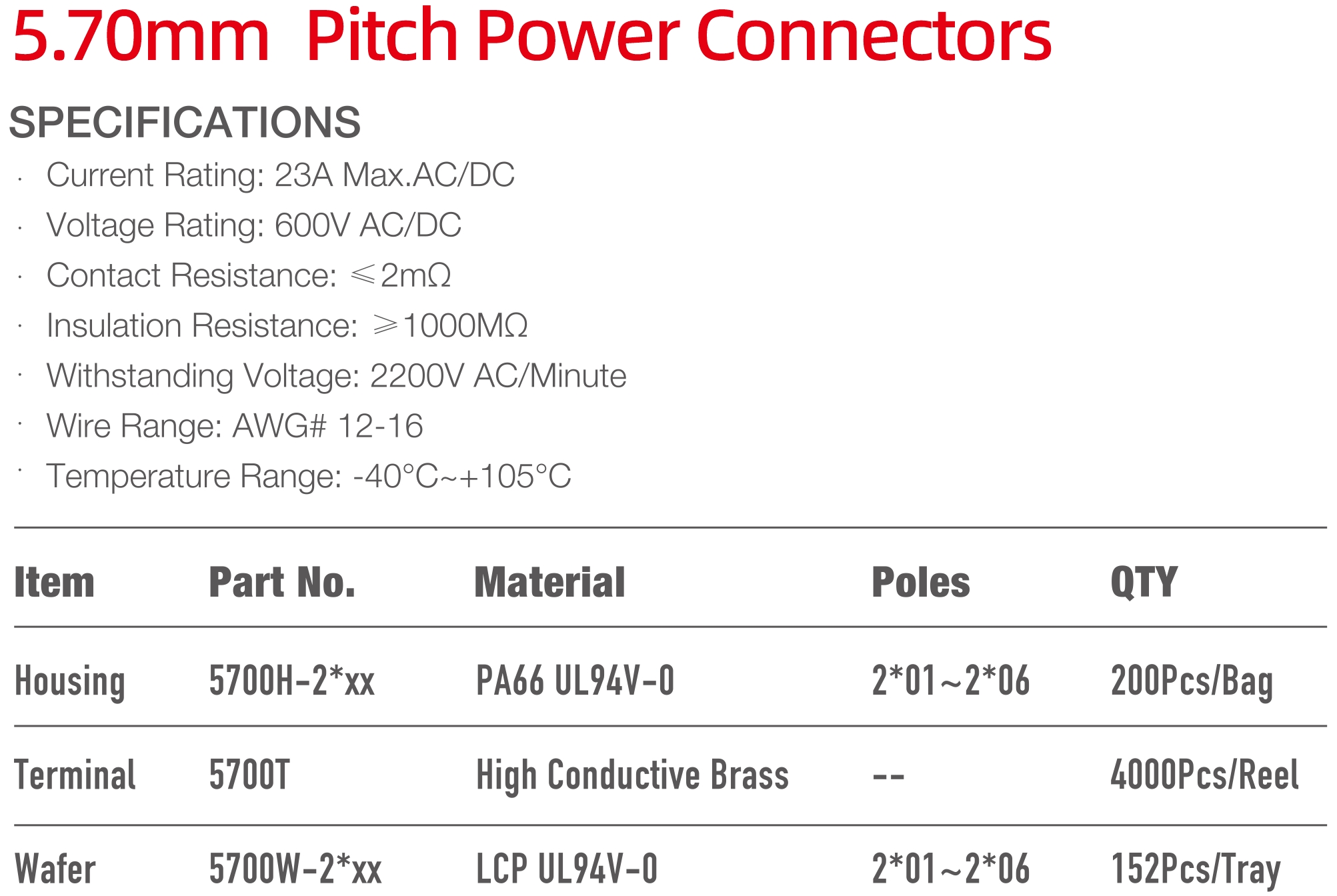 5700 Series 5.70mm Pitch (.224") 電源連接器