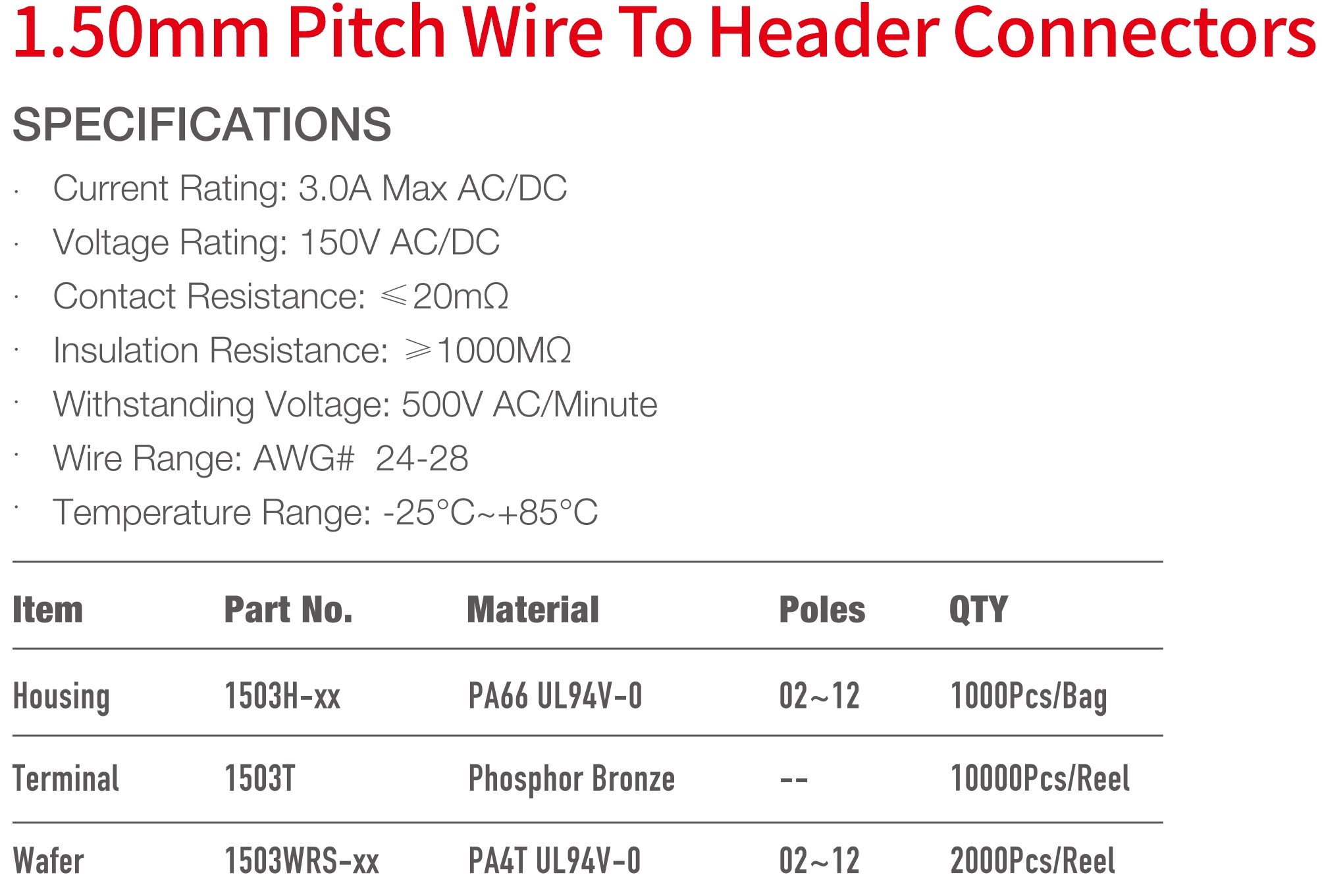 1503 Series 1.50mm Pitch (.059") 線對板連接器