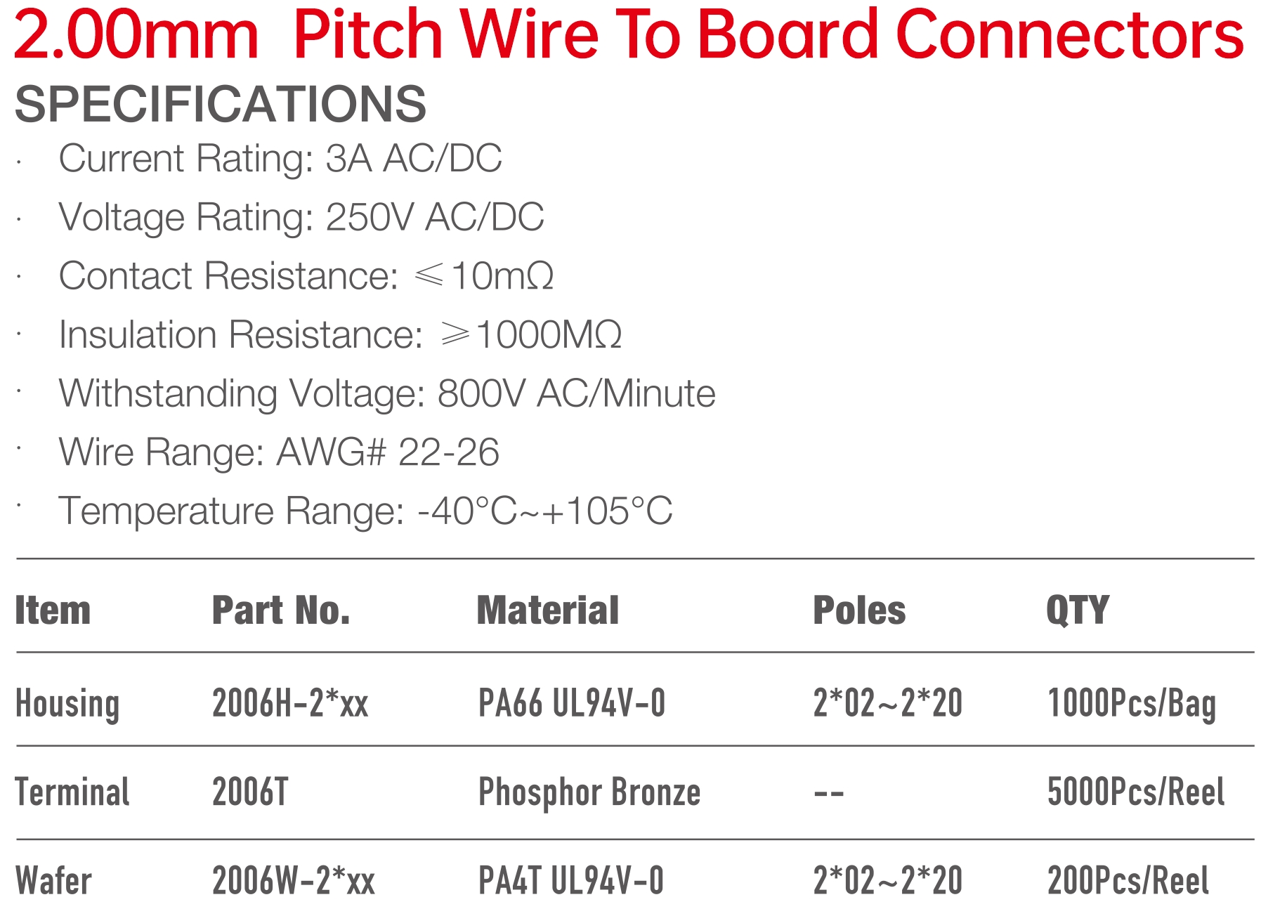 2006 Series 2.00mm Pitch (.079'') 線對(duì)板連接器
