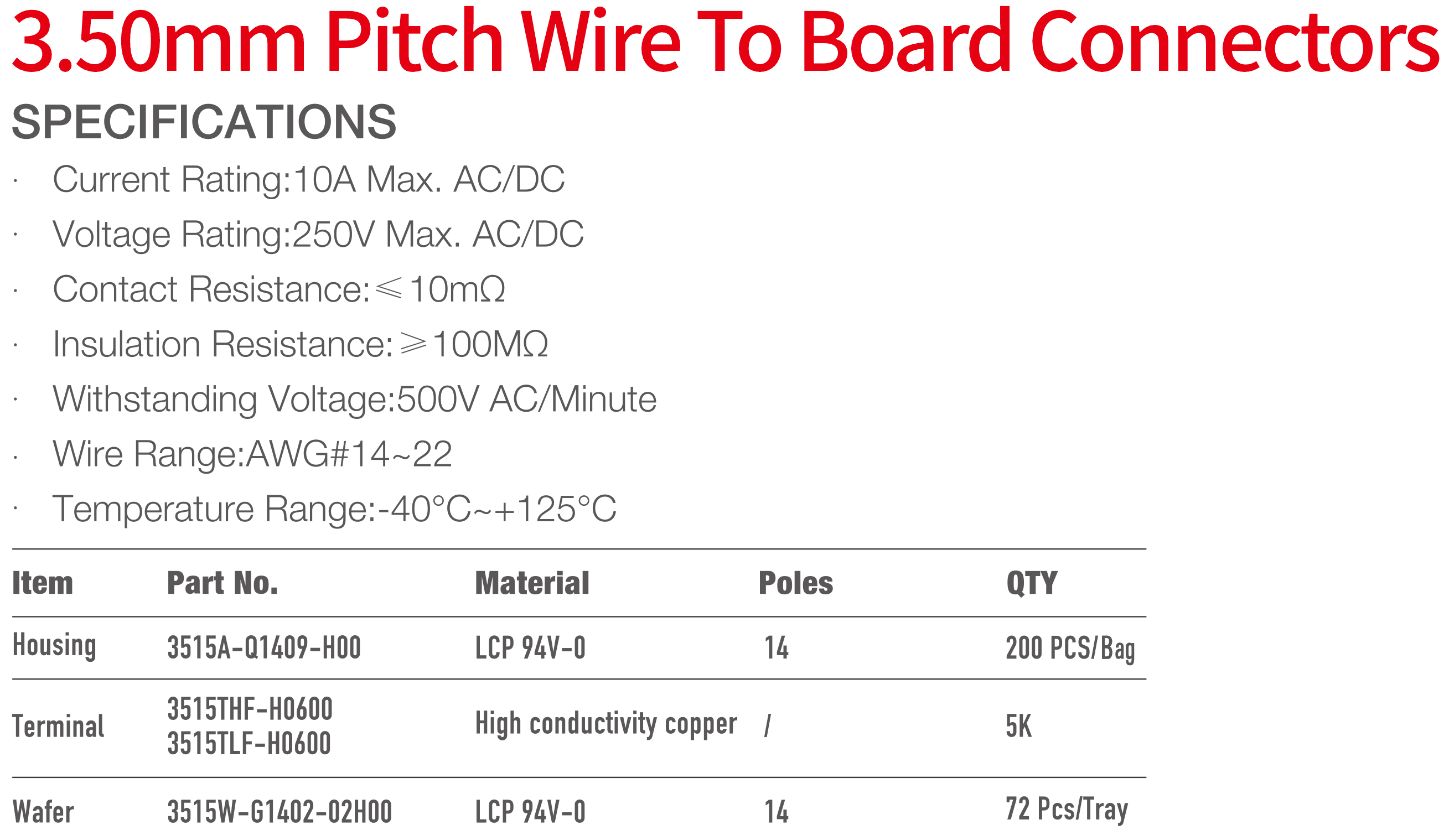 3515 Series 3.50mm Pitch (.138") Wire To Board Connectors