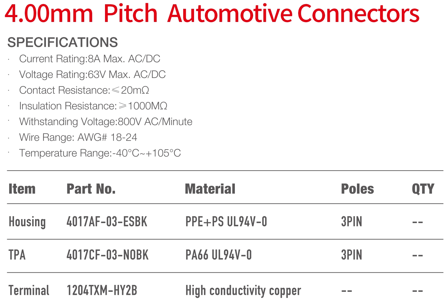 4017 Series 4.00mm Pitch (.157") 車用連接器