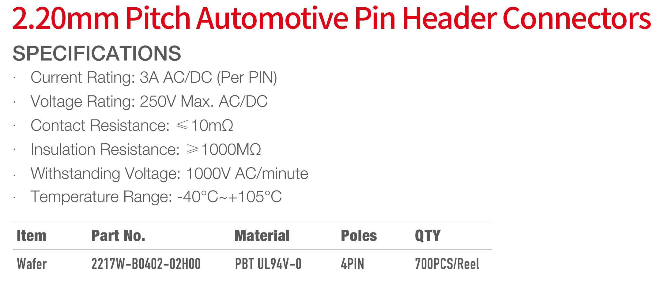 2217 Series 2.00mm Pitch (.087") 車(chē)用排針連接器