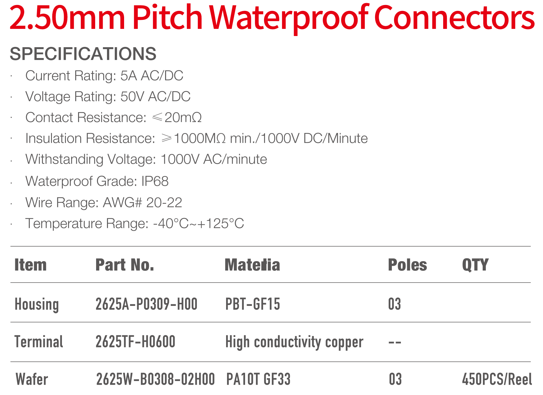 2625 Series 2.50mm Pitch (.098") 防水連接器